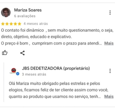 Esses pontos destacam a eficiência e o compromisso da JBS Dedetizadora com a satisfação e a segurança de você se tornar nosso cliente.